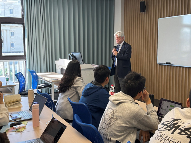 10月24日上午,联合国前副秘书长霍克希尔德先生(Fabrizio Hochschild) 在松江校区全球治理与区域国别研究大楼以“联合国的架构体系和人才需求”为主题面向师生开展讲座。讲座由上海全球治理与区域国别研究院和卓越学院主办,卓越学院副院长邓惟佳教授主持。霍克希尔德先生曾在联合国系统工作超过35年,历任联合国秘书长特别顾问、驻地协调员和人道主义协调员等高级职务。此次讲座,他系统阐释了联合国的运作机制与核心理念,并引领同学们深入理解国际事务的复杂面貌与现实图景。