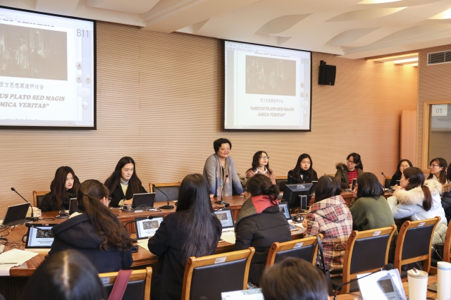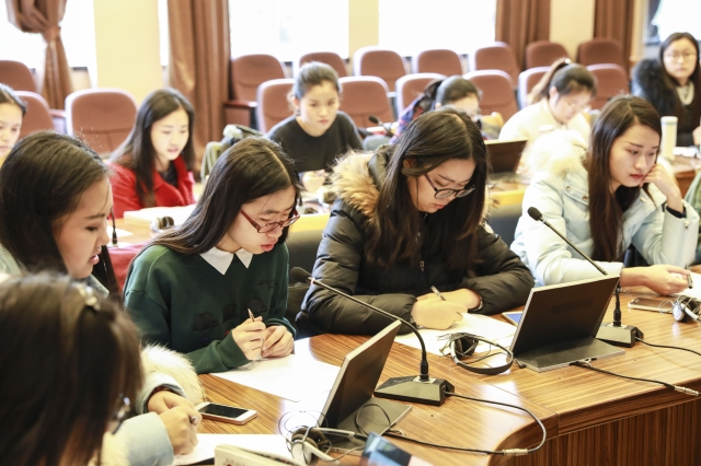 1224日,卓越学院2016级多语种高级翻译实验班的16名同学赴虹口校区,与上外高级翻译学院一年级硕士研究生一起参与了主题为“西方思想源流”的研讨会。此次活动也作为卓越学院本学期《听辩与转述》课程的期末测验,通过会议实践,考查同学们课堂知识的掌握情况和实际运用能力。