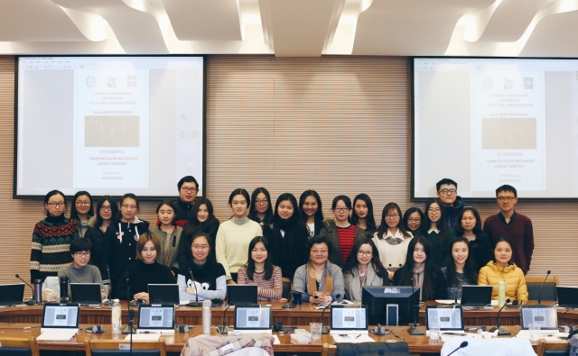 12月24日,卓越学院2016级多语种高级翻译实验班的16名同学赴虹口校区,与上外高级翻译学院一年级硕士研究生一起参与了主题为“西方思想源流”的研讨会。此次活动也作为卓越学院本学期《听辩与转述》课程的期末测验,通过会议实践,考查同学们课堂知识的掌握情况和实际运用能力。