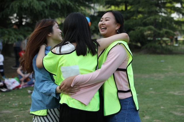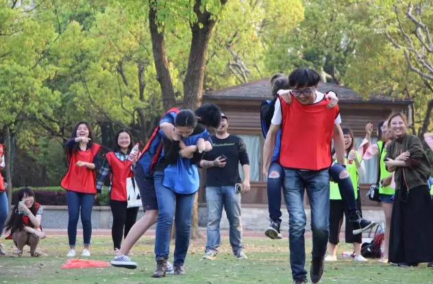 两个活动结束后,清凉快移也好,酷热骑行也罢,同学们转场至松江中央公园。第三个游戏考验的是同学们的默契程度,“骑士”若与“马”选择了相同答案,则可“骑马”冲向终点,先到的“马”即为胜者。游戏开始前,各个小组窃窃私语,各种损招层出不穷,只为获得团队胜利。前两轮中,绿队同学总以迅雷不及掩耳之势,一蹲,一跳,一背,夺命冲向终点,完成极佳配合。其他小组也不甘示弱,后发制人,其中的爆发力不可小觑。