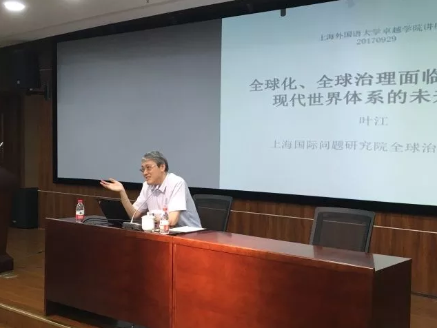 9月29日,来自上海国际问题研究院全球治理研究所的叶江教授为卓越学院的同学带来了讲座,全面但简洁地介绍了全球化与全球治理相关的概念,描述全球化的退潮及全球治理面临的挑战,从而带来的现代世界体系的稳定所面对的挑战,并提出了有关面对未来挑战的思索。