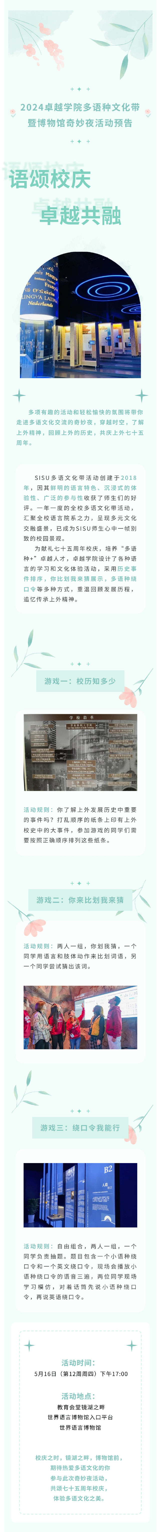 多语文化带暨博物馆奇妙夜活动预告:语颂校庆 卓越共融