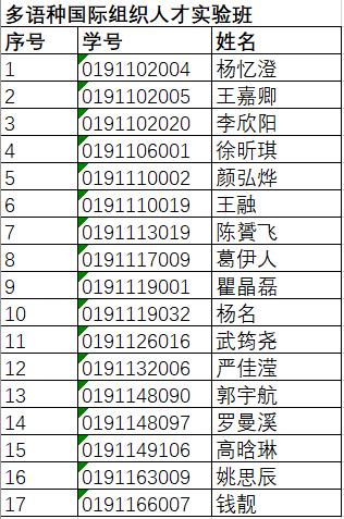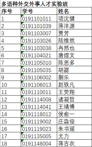 经过笔试和两轮面试选拔,按照各实验班报考同学的成绩排名,确定拟录取卓越学院的新生名单,现公示名单如下(按学号顺序排列):